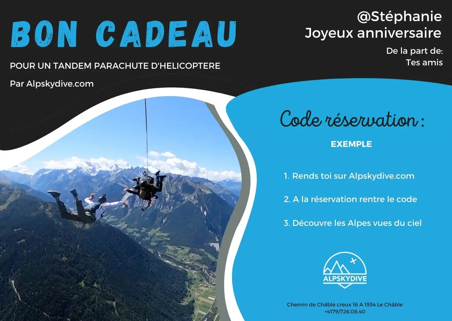 Les tandems parachute d'hélicoptère Alpskydive au-dessus de Verbier le cadeau idéal pour un souvenir inoubliable